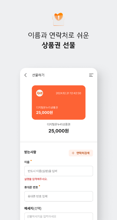 - 선물하기 기능을 통해 친구나 가족에게 상품권을 쉽게 보낼 수 있습니다.